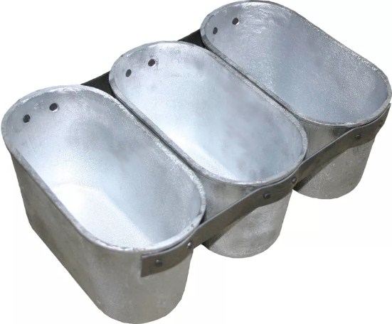 Хлебопекарные формы 2Л10 (овальные) изготавливаются из алюминиевых сплавов методом литья под давлением. Данный метод позволяет получать формы с гладкой поверхностью. Гладкая поверхность способствует экономии масла для смазки, более легкой очистке от нагара. Готовые хлебобулочные изделия легче выбиваются из формы с гладкой поверхностью. Масса хлеба зависит от вида теста и сорта муки, применяемой в рецепте. К примеру, в одной и той же форме хлеб из пшеничной муки будет иметь более легкий вес по сравнению с ржаным хлебом.